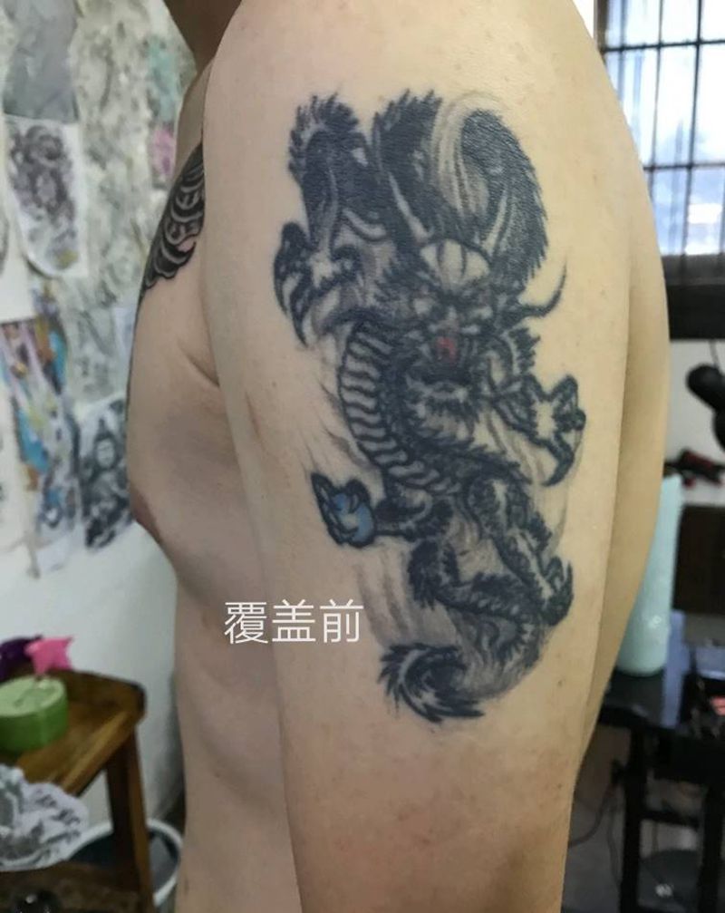 • T网红王老大花腿龙纹身图片_腿部新传统纹身图案