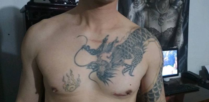当前位置: 首页 >广西柳州市纹身店-龙刺堂纹身工作室(谷埠店)纹身图案>未完成的覆盖旧纹身之花胸龙纹身图片_胸部新传统龙覆盖纹身图案