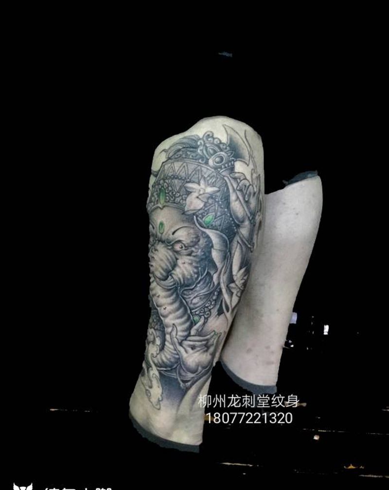 小腿象鼻神纹身图片_腿部新传统象鼻神纹身图案