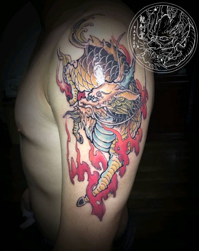 • T网红王老大花腿龙纹身图片_腿部新传统纹身图案