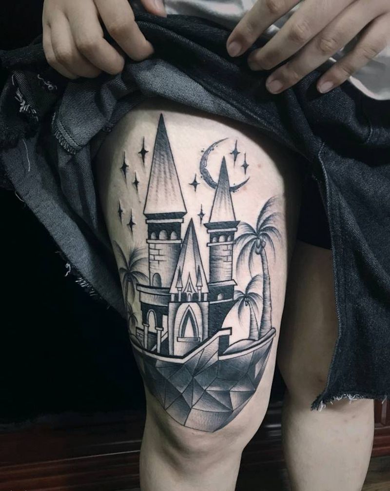 当前位置: 首页 >广西柳州市纹身店-龙刺堂纹身工作室(谷埠店)纹身图案>建筑覆盖旧文身纹身图片_腿部新传统建筑覆盖纹身图案