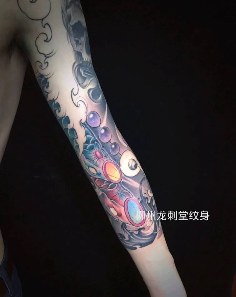 当前位置: 首页 >广西柳州市纹身店-龙刺堂纹身工作室(谷埠店)纹身图案>9分花臂纹身图片_手臂New School花臂纹身图案
