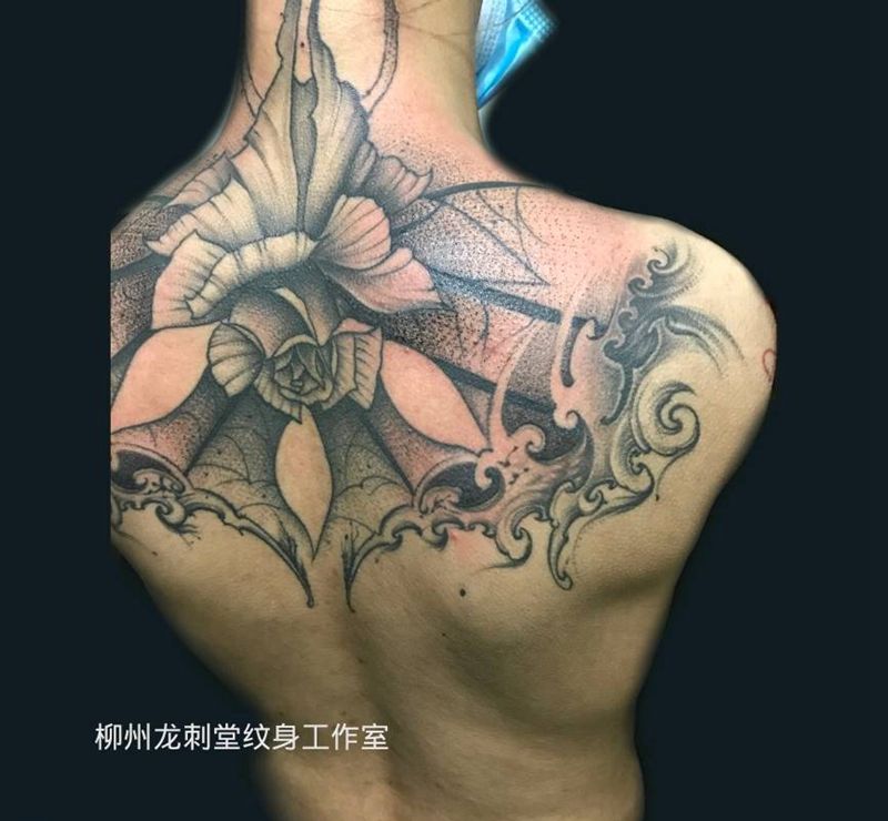 当前位置: 首页 >广西柳州市纹身店-龙刺堂纹身工作室(谷埠店)纹身图案>后背纹身纹身图片_背部新传统植物纹身图案