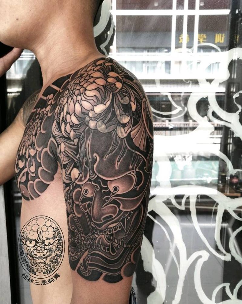 半甲遮盖纹身图片_胸部手臂老传统纹身图案