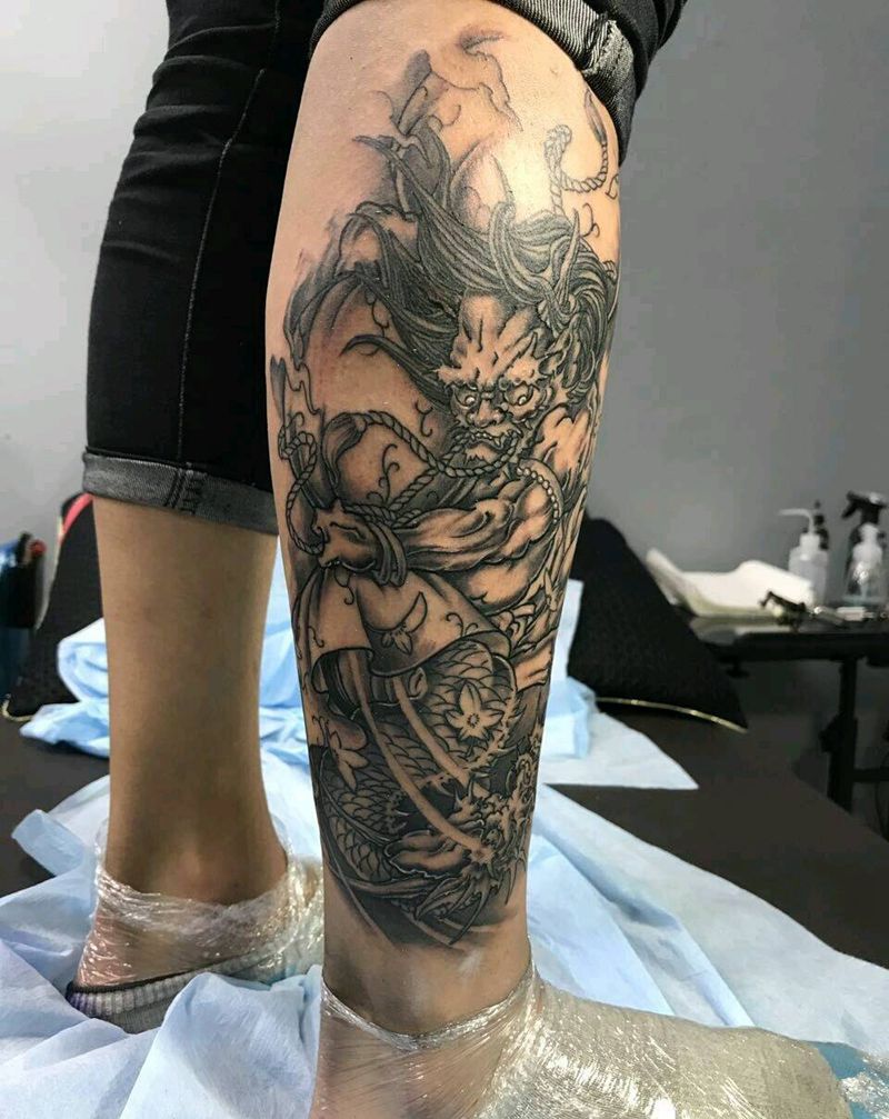 • T网红王老大花腿龙纹身图片_腿部新传统纹身图案