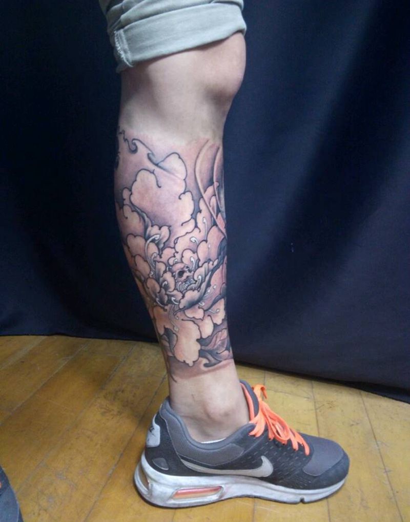 • T网红王老大花腿龙纹身图片_腿部新传统纹身图案