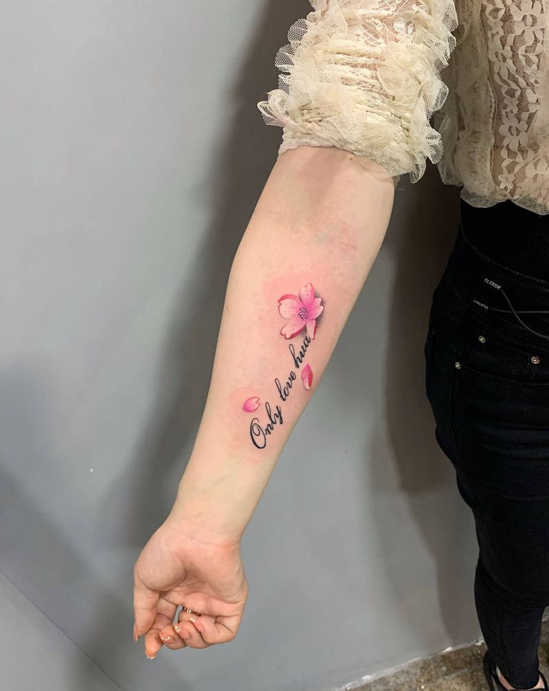 当前位置: 首页 >海南省海口市纹身店-海口.墨痕刺青纹身图案>樱花纹身图片_手臂手部水彩纹身图案