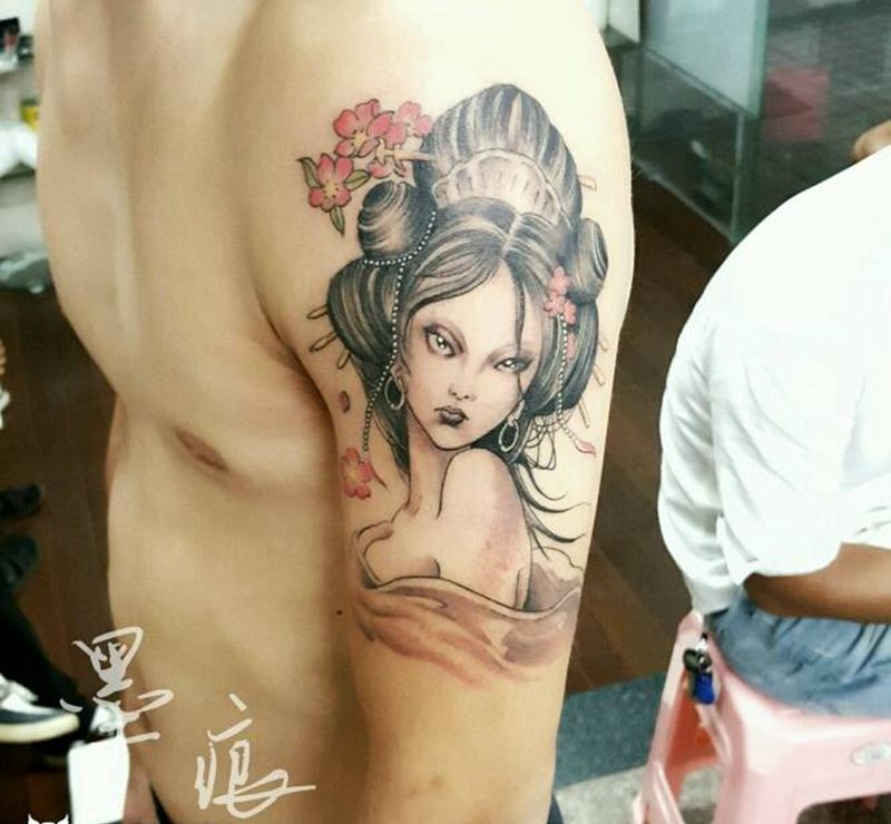 本店近作《艺妓》纹身图片_手臂手部传统人物成品纹身图案