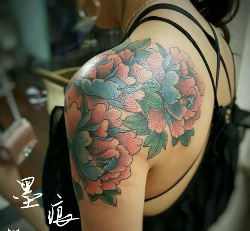 牡丹纹身图片_手臂手部传统植物静物成品纹身图案