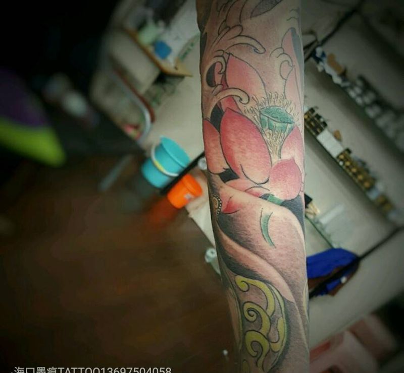 一组15张莲花纹身手
