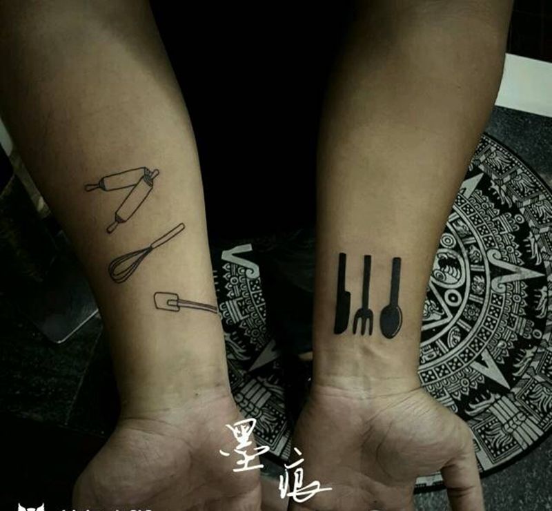 厨房工具纹身图片_手部清新几何图腾原创成品纹身图案
