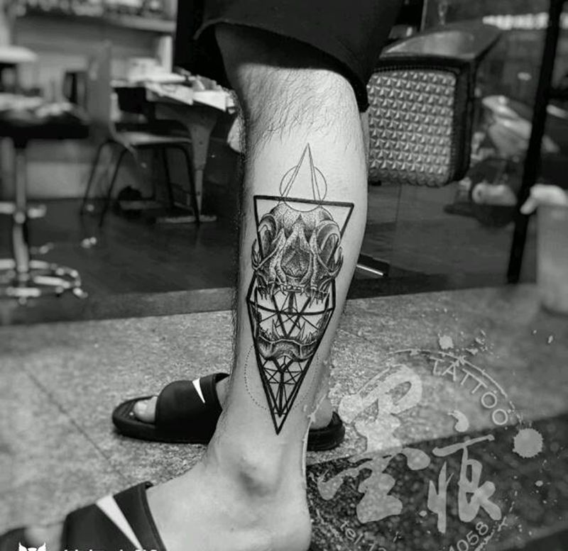 龙骨刺纹身图片_腿部脚部欧美清新几何动物鬼神图腾宗教成品纹身图案