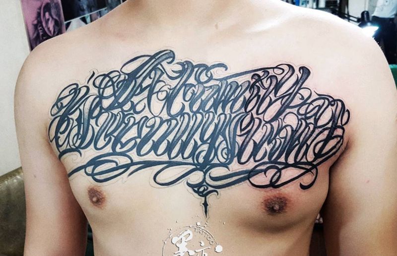当前位置: 首页 >海南省海口市纹身店-海口.墨痕刺青纹身图案>花胸英文纹身图片_胸部欧美清新几何字符原创成品纹身图案