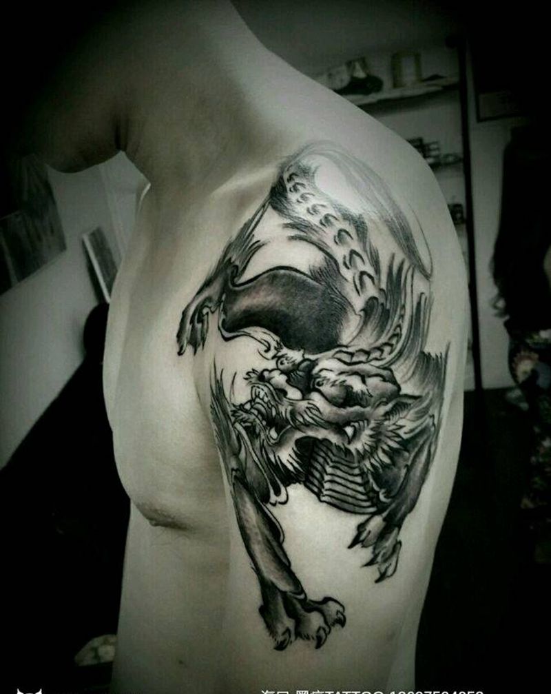 • 纹身吧推荐的披肩图腾半胛纹身图案作品展示