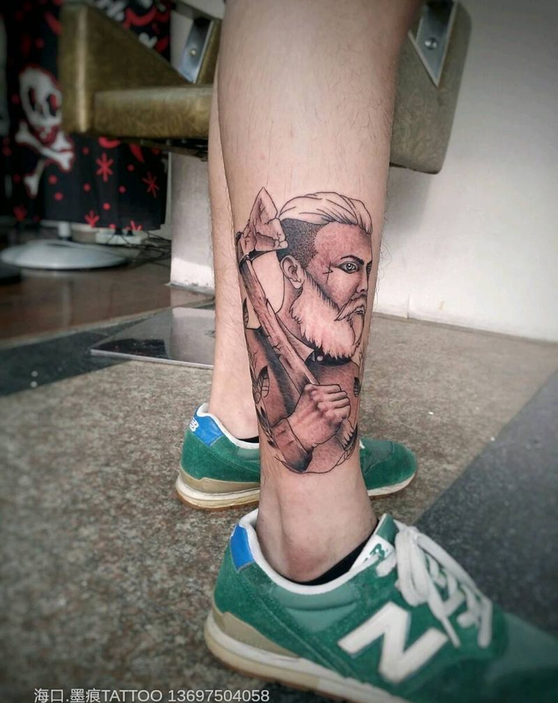 • T包小腿吹火男+阿多福纹身图片_腿部老传统新传统吹火男阿