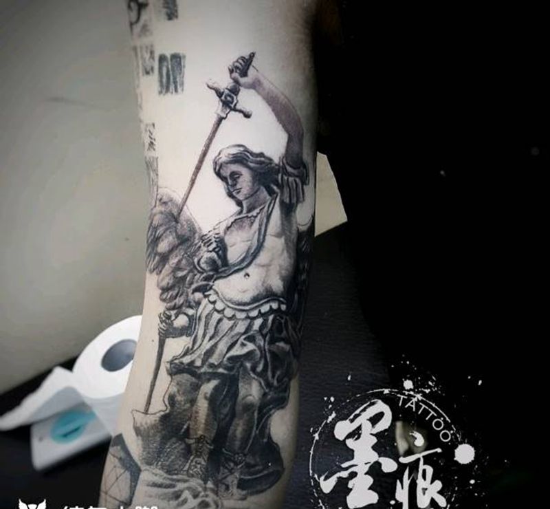 《大天使.米迦勒》纹身图片_手臂手部脚部欧美肖像人物鬼神宗教原创成品纹身图案