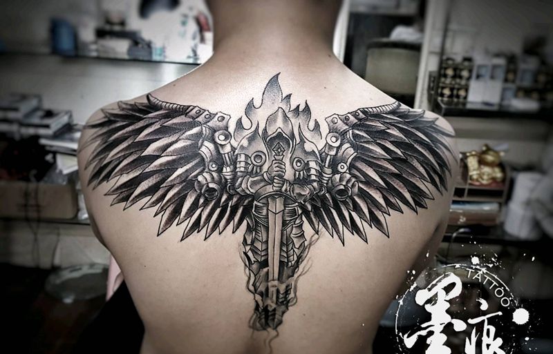 黑灰满背纹身图案