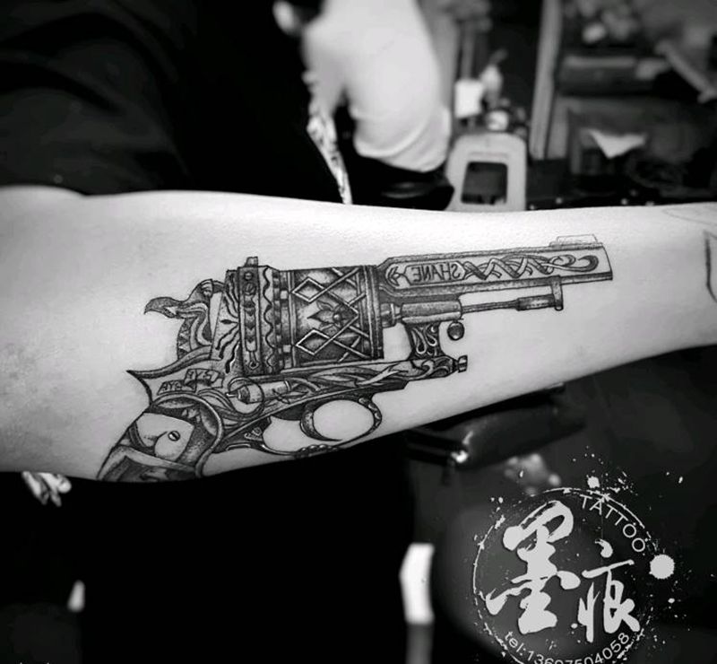 《枪》纹身图片_臀部手臂腿部手部脚部欧美清新写实原创成品纹身图案