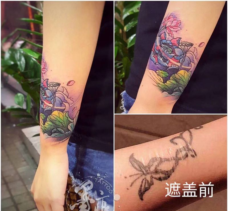 《荷》纹身图片_手部手臂水彩水墨纹身图案
