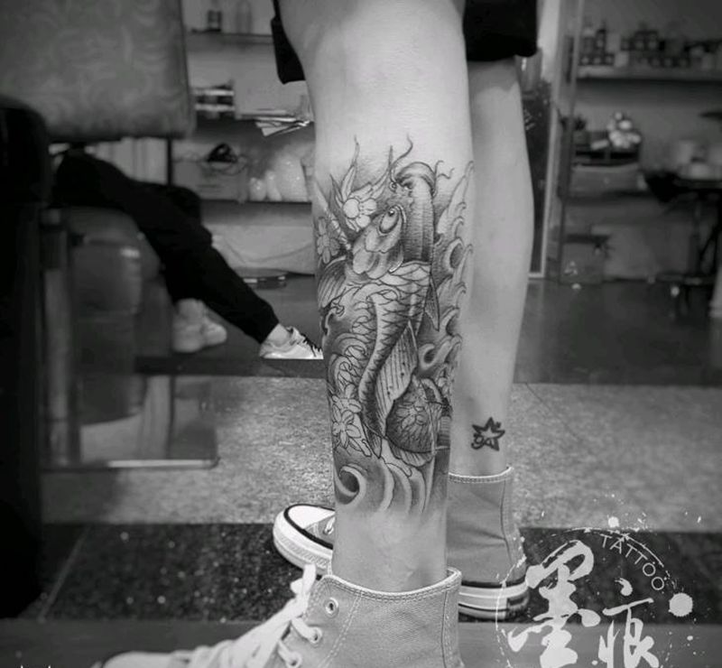 当前位置: 首页 >海南省海口市纹身店-海口.墨痕刺青纹身图案>《传统.锦鲤》纹身图片_腿部脚部几何新传统纹身图案