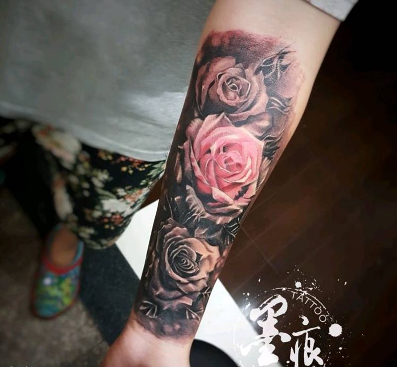 玫瑰纹身图片_手臂手部欧美写实植物原创成品纹身图案