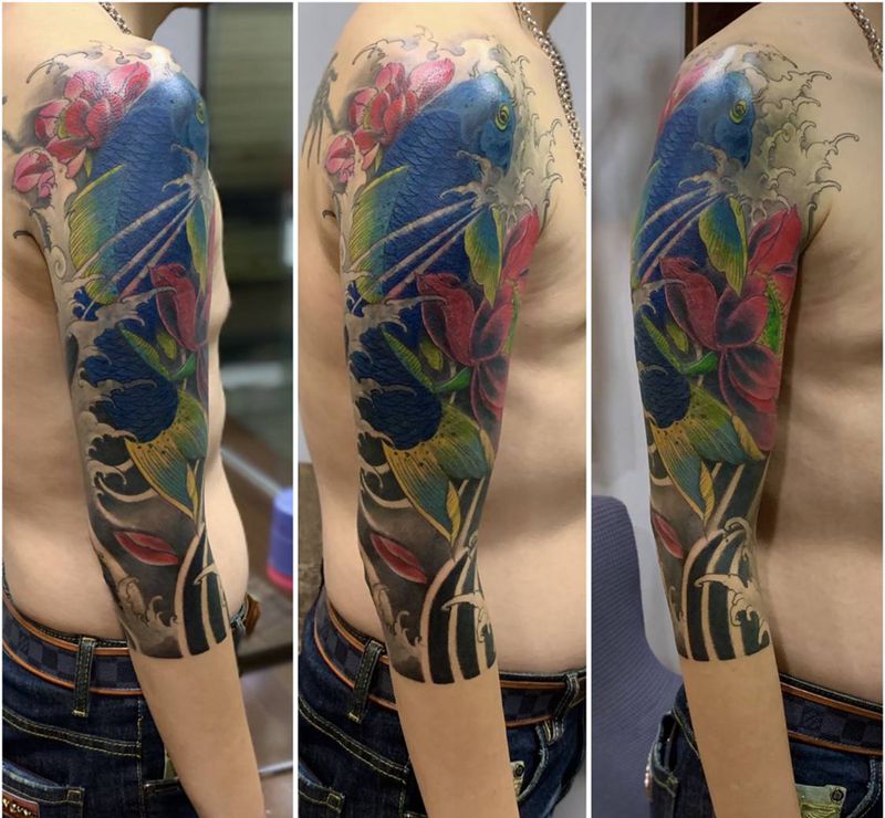 当前位置: 首页 >海南省海口市纹身店-海口.墨痕刺青纹身图案>【传统七分袖.锦鲤