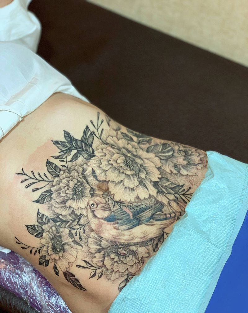 【素花】纹身图片_腹部点刺欧美写实纹身图案