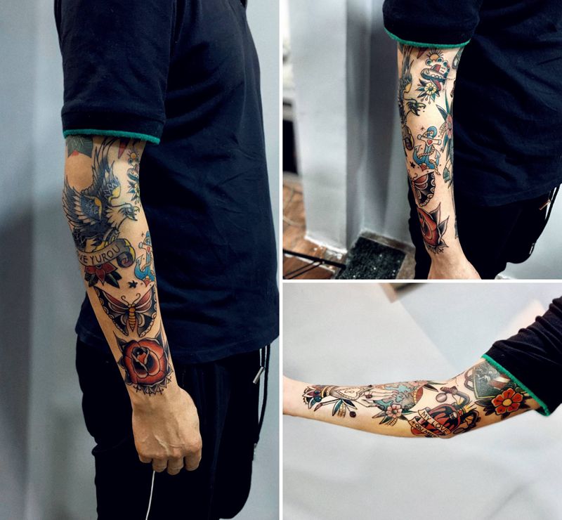 当前位置: 首页 >海南省海口市纹身店-海口.墨痕刺青纹身图案>school花臂纹身图片_手臂手部Old School纹身图案