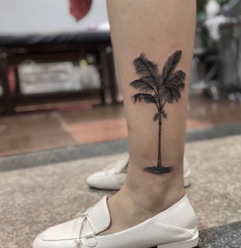 【椰子树】纹身图片_脚部腿部几何纹身图案