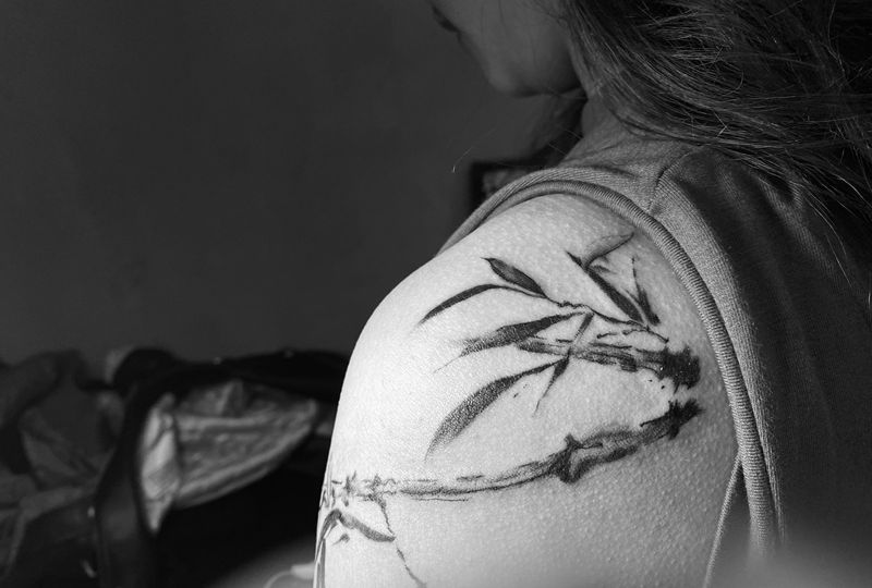 当前位置: 首页 >广西贵港市纹身店-罐头刺青纹身图案>竹纹身图片_肩部手臂水墨纹身图案