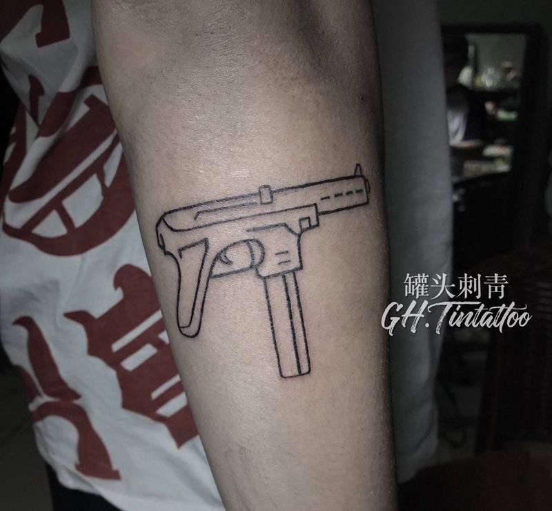 当前位置: 首页 >广西贵港市纹身店-罐头刺青纹身图案>一把枪纹身图片_手臂几何纹身图案