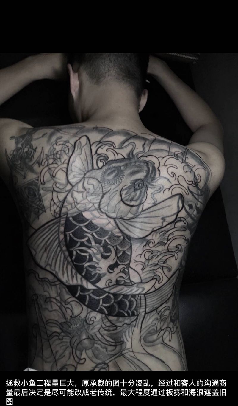 • 黑灰满背纹身图案