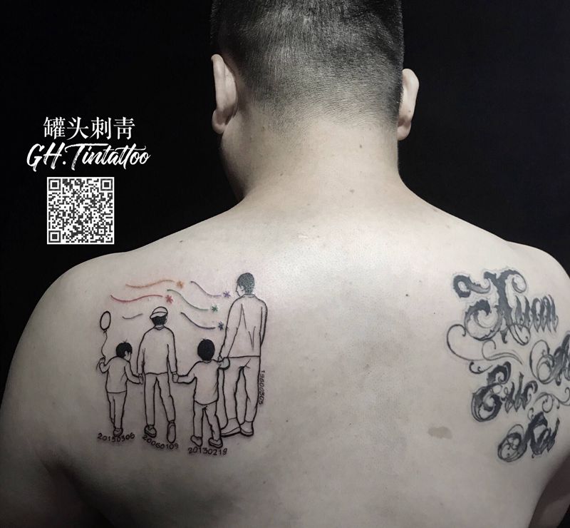 • T家庭图,一家四口生日纪念!纹身图片_手臂纹身图案