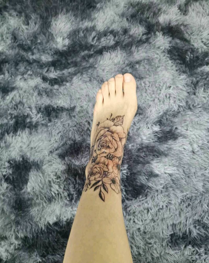 疤痕遮盖纹身图片_脚部点刺纹身图案