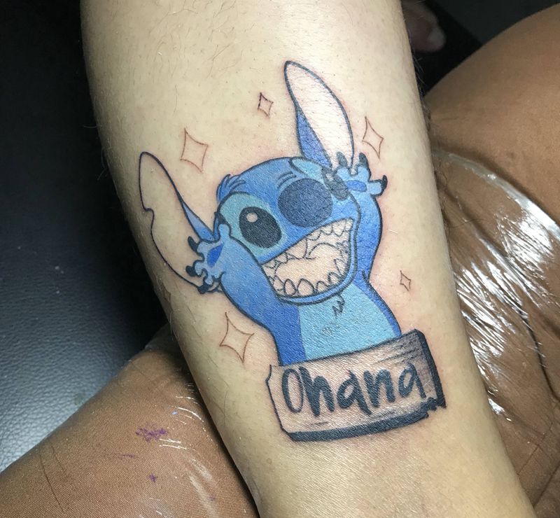 当前位置: 首页 >广西贵港市纹身店-罐头刺青纹身图案>客人自带史迪奇纹身图片_脚部New School纹身图案