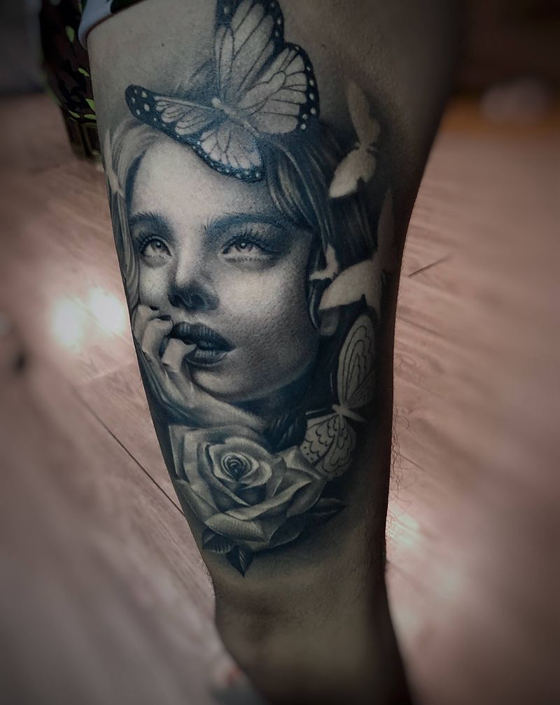当前位置: 首页 >广西玉林市纹身店-雅阁刺青堂纹身图案>女人纹身图片_腿部欧美写实纹身图案