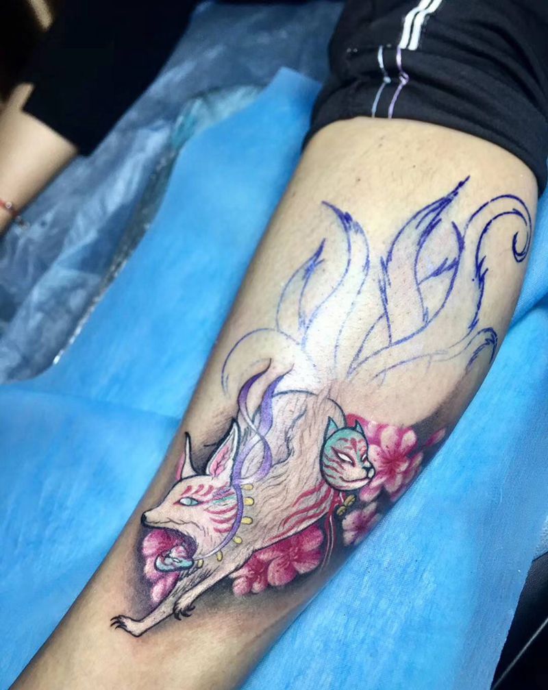 • T网红王老大花腿龙纹身图片_腿部新传统纹身图案