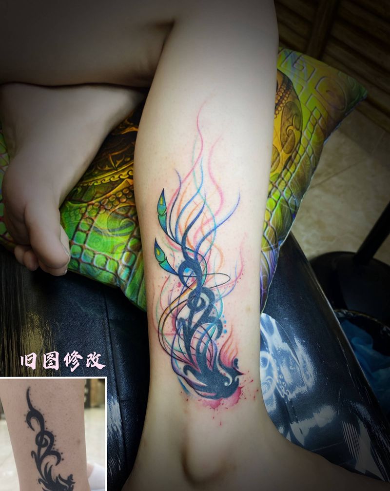 当前位置: 首页 >海南省海口市纹身店-黑木崖刺青艺术工作室纹身图案>凤凰纹身图片_腿部脚部水彩凤凰纹身图案