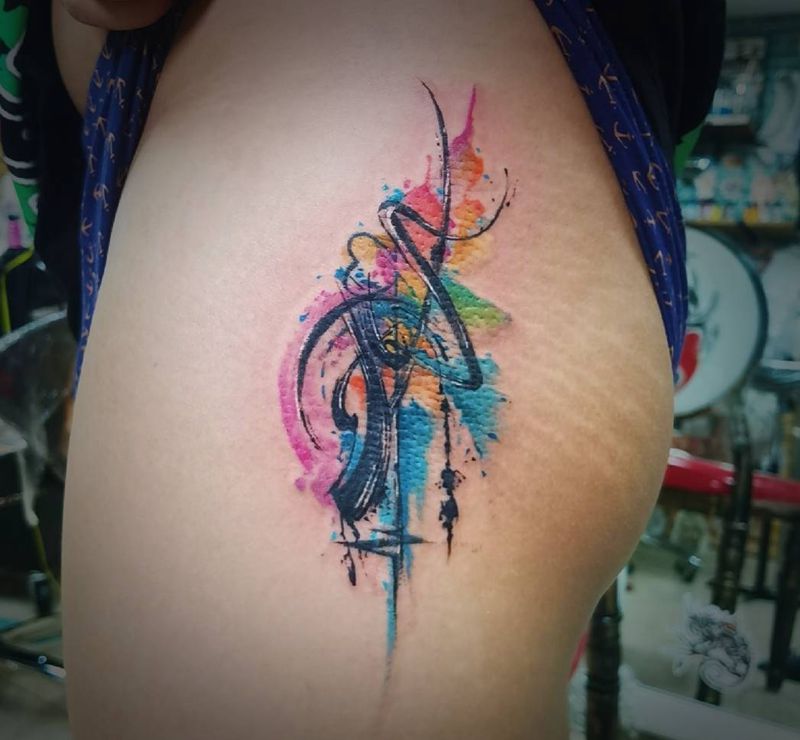 水彩遮盖纹身图片_臀部水彩水墨纹身图案