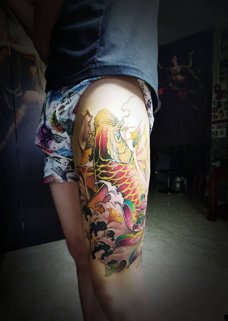 当前位置: 首页 >海南省海口市纹身店-黑木崖刺青艺术工作室纹身图案>鱼纹身图片_腿部新传统鱼纹身图案