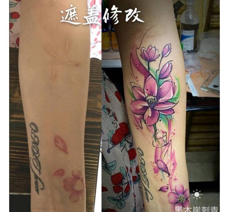 当前位置: 首页 >海南省海口市纹身店-黑木崖刺青艺术工作室纹身图案>修改遮盖纹身图片_手臂水彩纹身图案