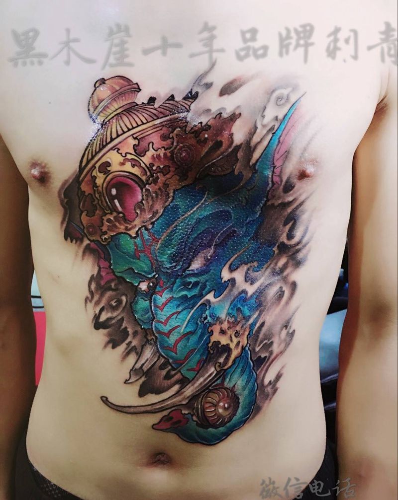 当前位置: 首页 >海南省海口市纹身店-黑木崖刺青艺术工作室纹身图案>象神遮盖纹身图片_胸部传统鬼神成品纹身图案