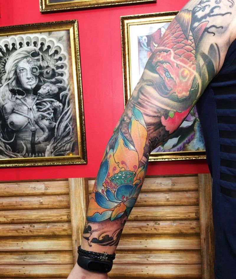 当前位置: 首页 >海南省海口市纹身店-黑木崖刺青艺术工作室纹身图案>牡丹莲花花臂纹身图片