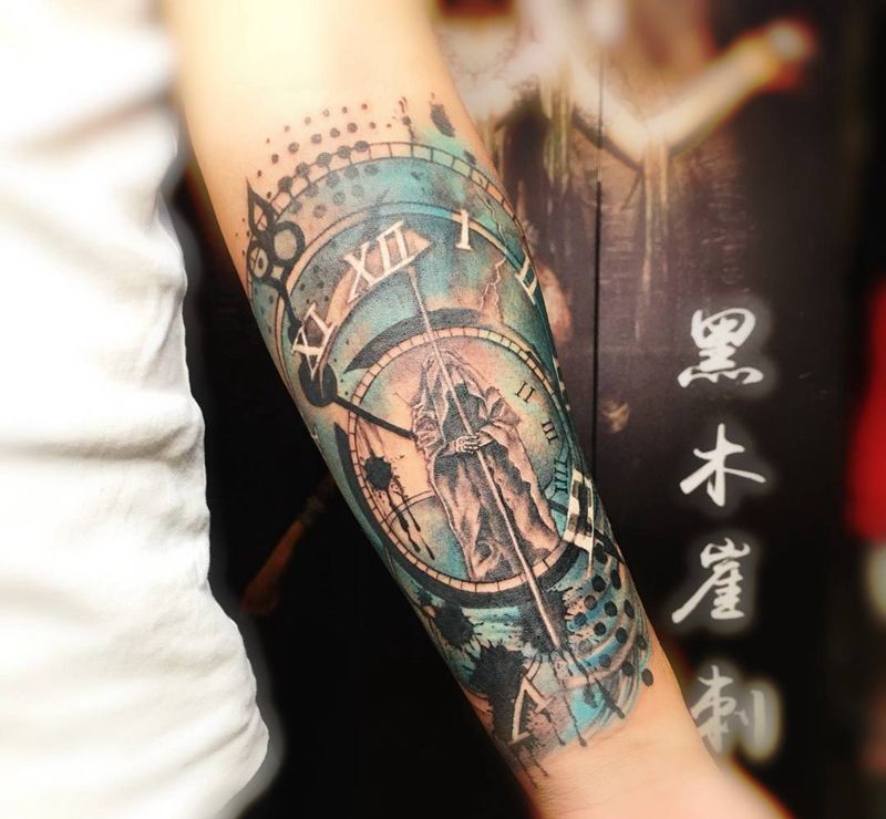 当前位置: 首页 >海南省海口市纹身店-黑木崖刺青艺术工作室纹身图案>时间纹身图片