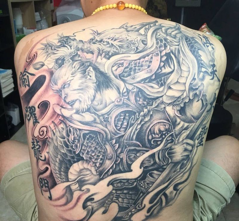 • T云龙九郎纹身图片_背部老传统云龙九郎纹身图案
