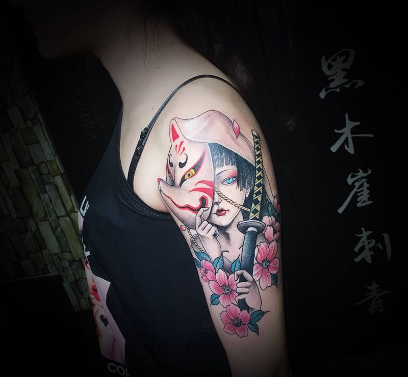 当前位置: 首页 >海南省海口市纹身店-黑木崖刺青艺术工作室纹身图案>日式人物纹身图片_肩部手臂纹身图案