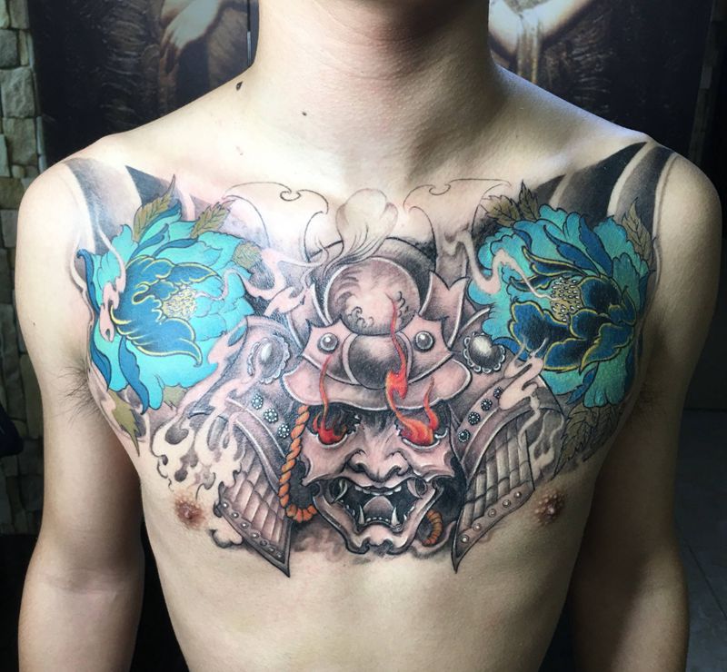 当前位置: 首页 >海南省海口市纹身店-黑木崖刺青艺术工作室纹身图案>鬼武士花胸纹身图片