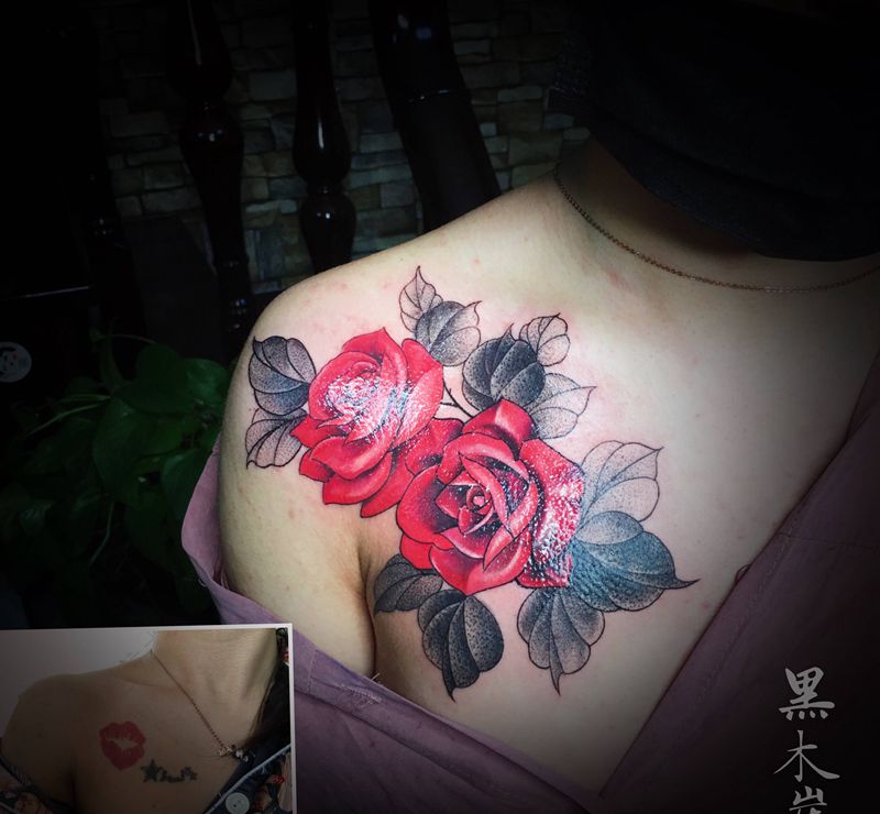 当前位置: 首页 >海南省海口市纹身店-黑木崖刺青艺术工作室纹身图案>遮盖花纹身图片_肩部New School纹身图案