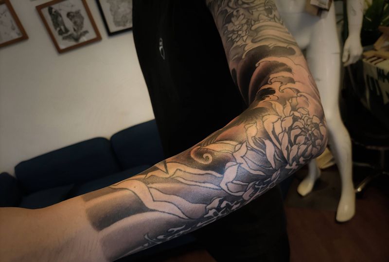 当前位置: 首页 >海南省海口市纹身店-海口喜鹊刺青艺术工作室纹身图案>花臂纹身图片_手臂老传统新传统纹身图案