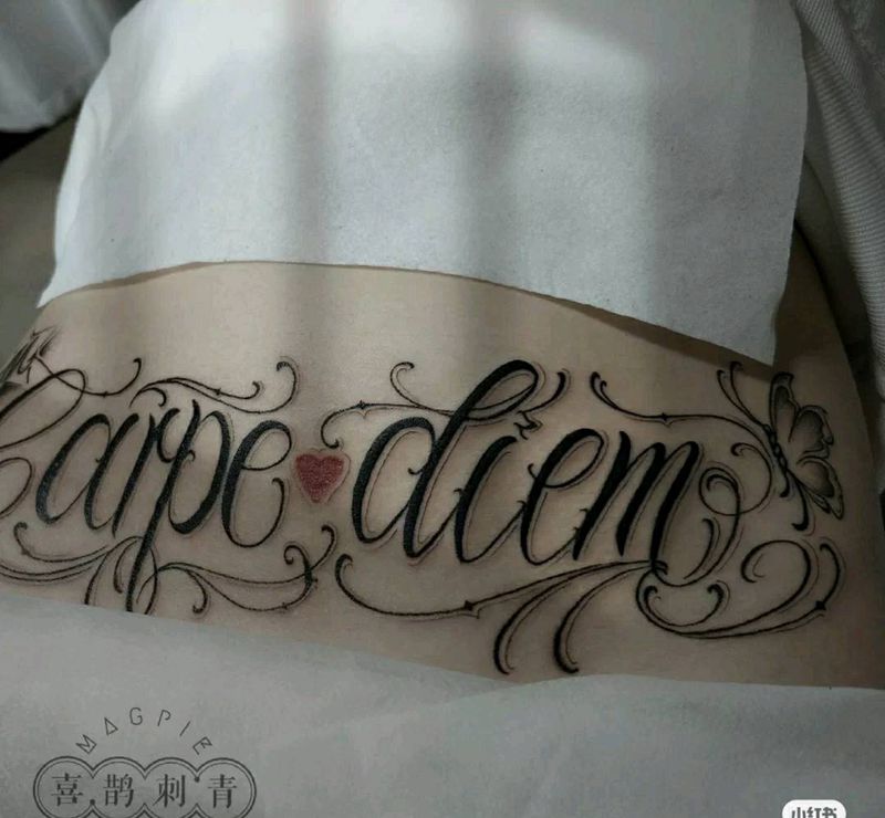 • T关于私处得爱!纹身图片_成品腹部清新字符图腾纹身图案